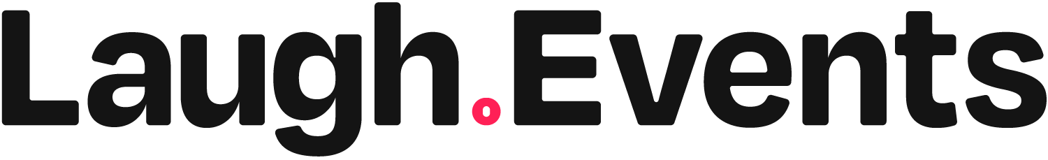Logo with the text "Laugh.Events" in black, featuring a pink dot between the words.